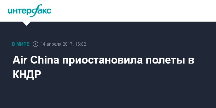 Москва. 14 апреля. INTERFAX.RU - Авиакомпания Air China с 17 апреля приостановит авиасообщение с Пхеньяном, сообщило в пятницу Центральное телевидения.
