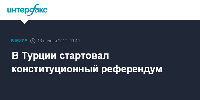 Москва. 16 апреля. INTERFAX.RU - Граждане Турции голосуют на референдуме, посвященном внесению изменений в Основной закон страны, сообщает в воскресенье британская телерадиокорпорация BBC.