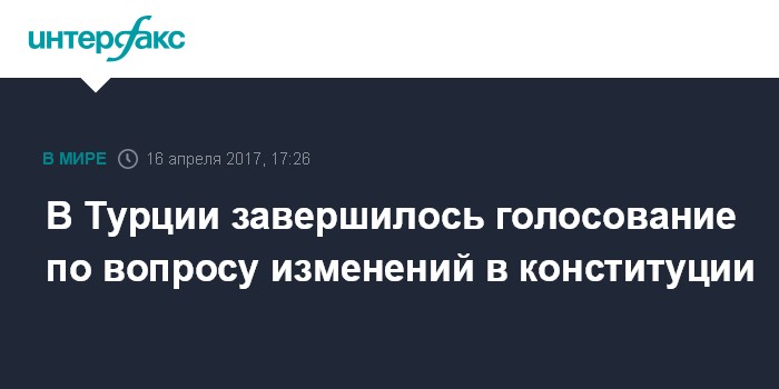 Москва. 16 апреля. INTERFAX.RU - Избирательные участки для голосования на конституционном референдуме закрылись в Турции, передает в воскресенье агентство Associated Press.