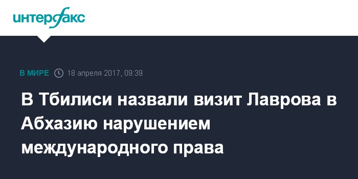 Москва. 18 апреля. INTERFAX.RU - В Тбилиси негативно оценивают начинающийся во вторник визит министра иностранных дел РФ Сергея Лаврова в Абхазию. Как заявил журналистам министр иностранных дел Грузии Михаил Джанелидзе, данный визит "является провокационным шагом".
