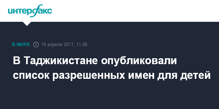 Согласно внесенным изменениям, присвоение имен и их правильное написание в Таджикистане осуществляется "согласно культуре, национальным традициям и Реестру таджикских национальных имен", утверждаемому правительством республики.