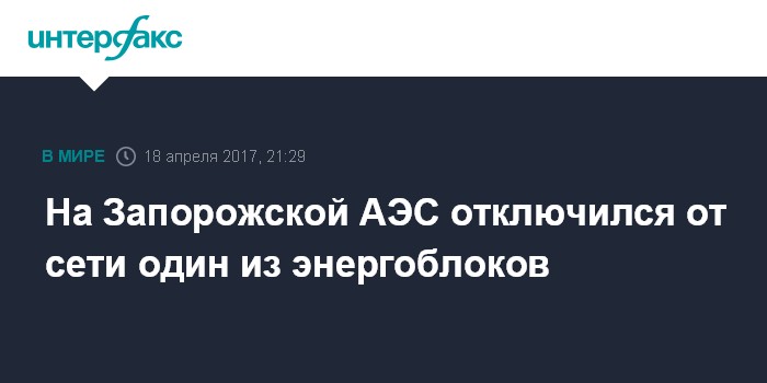 "18 апреля 2017 года в 19 часов 52 минуты энергоблок №6 Запорожской АЭС действием автоматики отключен от сети. Причины срабатывания автоматики выясняются", - говорится в сообщении.
