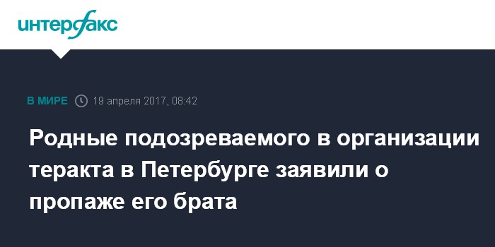Родные подозреваемого в организации теракта в Петербурге заявили о пропаже его брата