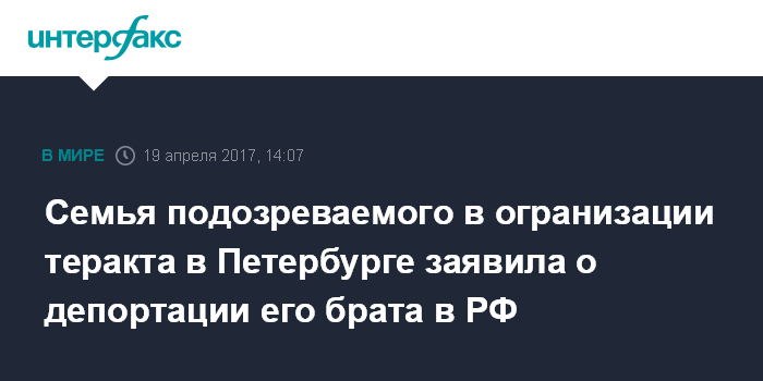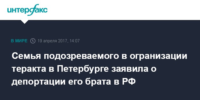 Семья подозреваемого в огранизации теракта в Петербурге заявила о депортации его брата в РФ