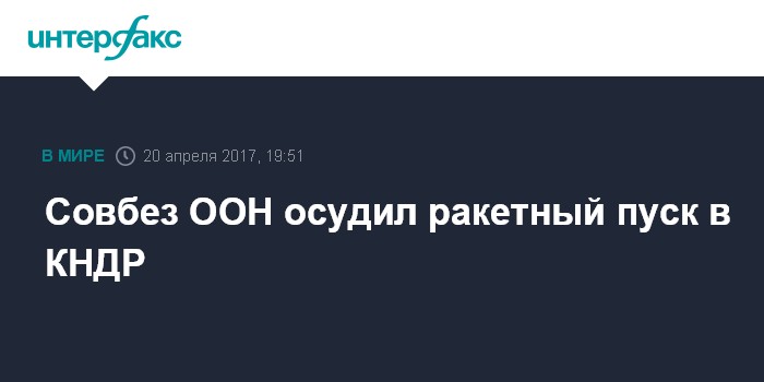 Москва. 20 апреля. INTERFAX.RU - Совет безопасности ООН согласовал заявление для прессы с осуждением недавнего ракетного пуска КНДР, в текст документа вошли формулировки, на которых настаивала Россия.