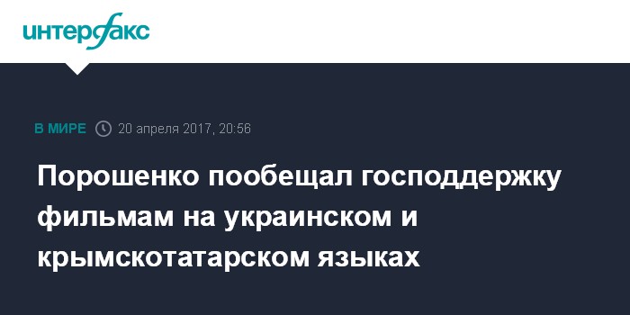 "Есть принципиальная и четкая позиция - право на поддержку будет иметь только продукция, которая будет производиться на украинском языке. Единственное исключение для этого - крымскотатарский язык, с учетом тех позиций, в которые, в результате незаконной аннексии Крыма, попал крымскотатарский народ", - сказал украинский президент.