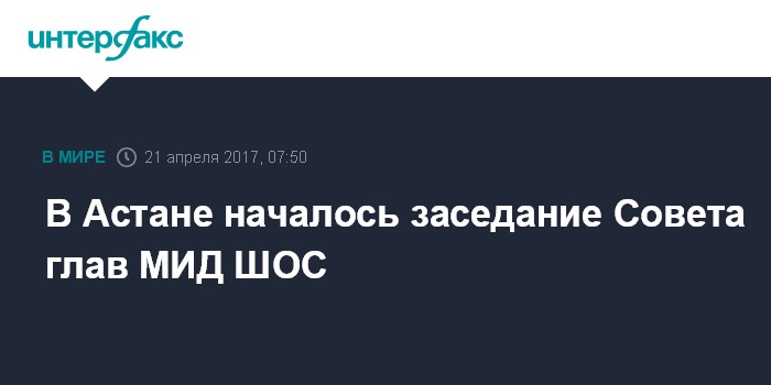 Москва. 21 апреля. INTERFAX.RU - Заседание Совета глав МИД Шанхайской организации сотрудничества (ШОС) началось в эти минуты в Астане, российскую делегацию возглавляет министр иностранных дел Сергей Лавров.