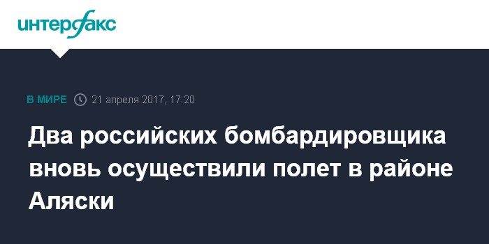 Москва. 21 апреля. INTERFAX.RU - Два дальних стратегических бомбардировщика Воздушно-космических сил (ВКС) России Ту-95 замечены в международном воздушном пространстве в 700 морских милях юго-западнее города Анкориджа на Аляске, сообщает в пятницу американский телеканал CNN.