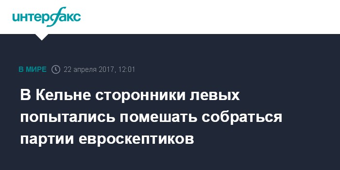 Москва. 22 апреля. INTERFAX.RU - Несколько тысяч левых демонстрантов в субботу попытались воспрепятствовать сбору участников съезда партии "Альтернатива для Германии", проведение которого намечено в Кельне.