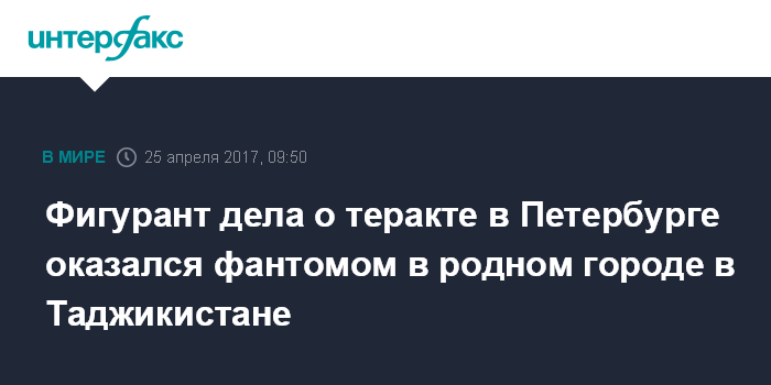 Москва. 25 апреля. INTERFAX.RU - Фигуранта дела о теракте в метро Петербурга Содика Ортикова не знают госорганы на его предполагаемой родине, сообщил "Интерфаксу" источник в Генпрокуратуре Таджикистана.