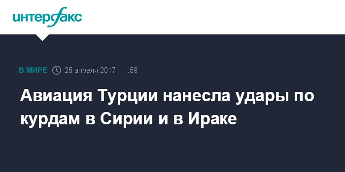 Москва. 25 апреля. INTERFAX.RU - ВВС Турции во вторник утром нанесли серию ударов по позициям курдов на севере Сирии и в Ираке.