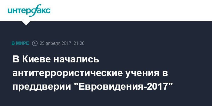 Москва. 25 апреля. INTERFAX.RU - Служба безопасности Украины во вторник вечером проводит антитеррористические учения на базе "Международного выставочного центра" (МВЦ) в Киеве, где в мае будет проходить песенный конкурс "Евровидение-2017".