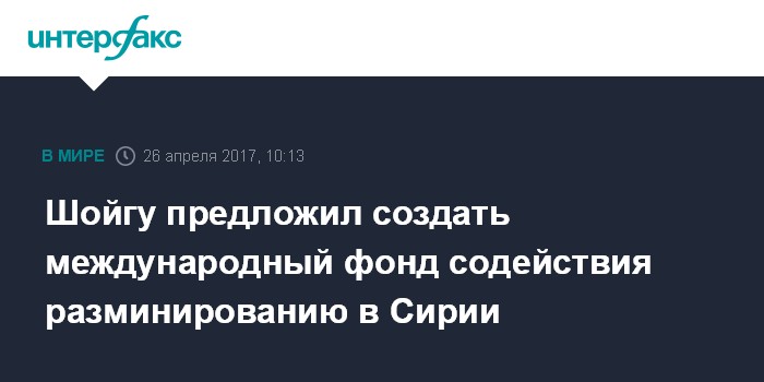 Москва. 26 апреля. INTERFAX.RU - В России предлагают создать коалицию стран для разминирования в Сирии, привлечь коммерческие организации.