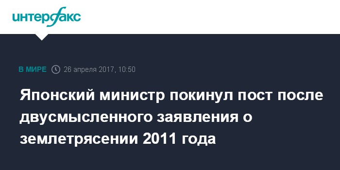 Японский министр покинул пост после двусмысленного заявления о землетрясении 2011 года