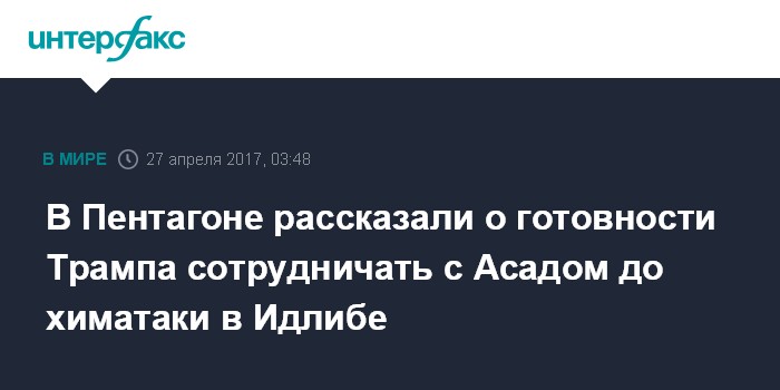 В Пентагоне рассказали о готовности Трампа сотрудничать с Асадом до химатаки в Идлибе