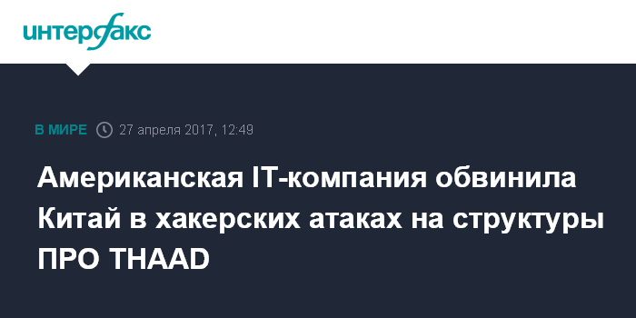 Американская IT-компания обвинила Китай в хакерских атаках на структуры ПРО THAAD