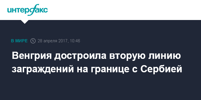 Москва. 28 апреля. INTERFAX.RU - Премьер-министр Венгрии Виктор Орбан заявил, что строительство второй линии заграждения от наплыва мигрантов на границе с Сербией завершено.