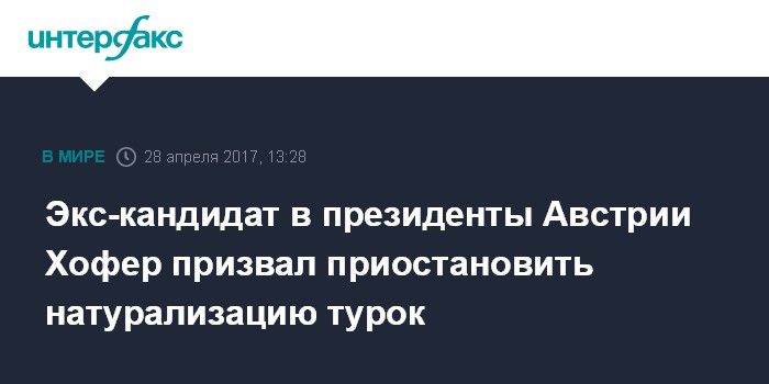 "Если бы я мог принимать решения, я бы не натурализовал ни одного турка, пока мы не получим информацию из Анкары о двойном гражданстве" - сказал Хофер в пятницу в эфире австрийского телеканала Oe24 TV.