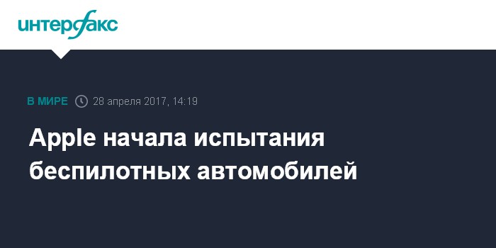 Москва. 28 апреля. INTERFAX.RU - Apple начала испытания беспилотных автомобилей на базе Lexus RX450h, сообщает агентство Bloomberg