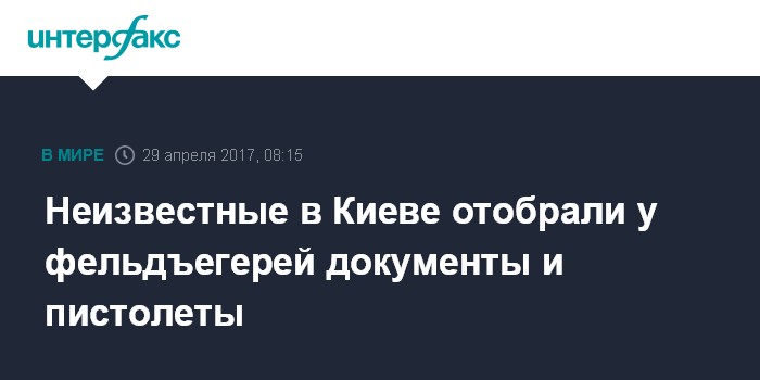 Москва. 29 апреля. INTERFAX.RU - В Киеве на вокзале неизвестные напали на троих сотрудников фельдъегерской службы, отобрав у них несколько сумок с корреспонденцией и два пистолета Макарова, сообщила спикер ГУ Национальной полиции в Киеве Оксана Блищик.