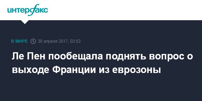 Москва. 30 апреля. INTERFAX.RU - Глава партии "Национальный фронт" Марин Ле Пен пообещала в случае своей победы на президентских выборах во Франции поднять вопрос о возвращении страны к национальной валюте, пишет в субботу Le Parisien.