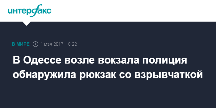 Москва. 1 мая. INTERFAX.RU - В Приморском районе Одессы в ночь на понедельник полиция обнаружила рюкзак с двумя осколочными гранатами, тротиловой шашкой и детонатором.