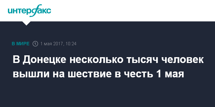 Москва. 1 мая. INTERFAX.RU - Несколько тысяч человек принимают участие в праздничном шествии в честь 1 мая, которое проходит в Донецке, передает корреспондент "Интерфакса".