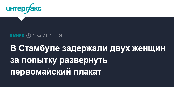 Москва. 1 мая. INTERFAX.RU - Полиция задержала в понедельник двух женщин, которые пытались развернуть на площади Таксим в Стамбуле первомайский плакат, сообщил портал турецкой газеты Hurriyet.