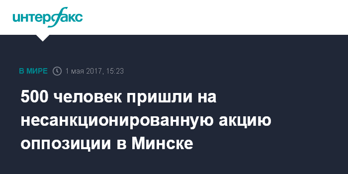 Москва. 1 мая. INTERFAX.RU - Несанкционированная акция оппозиции прошла в понедельник в центре Минска.