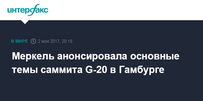 Меркель анонсировала основные темы саммита G-20 в Гамбурге