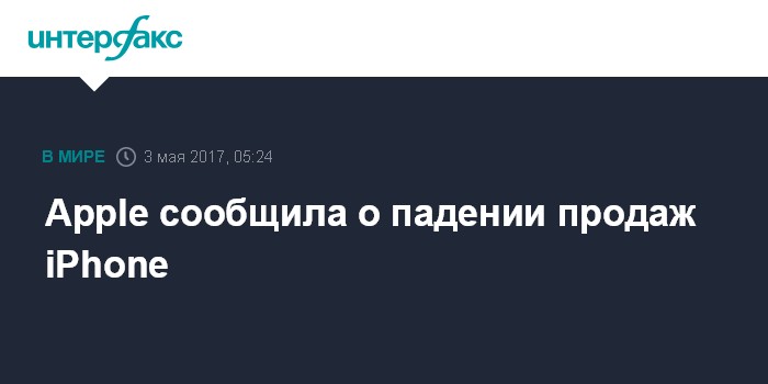 Москва. 3 мая. INTERFAX.RU - Компания Apple отчиталась о падении продаж iPhone во втором квартале 2017 года на 1% по сравнению с аналогичным периодом в 2016 году, сообщает во вторник "Би-Би-Си".