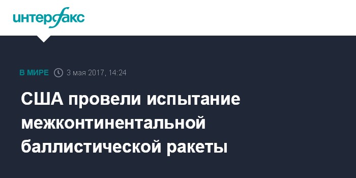 Москва. 3 мая. INTERFAX.RU - ВВС США в среду провели успешный испытательный пуск межконтинентальной баллистической ракеты (МБР) Minuteman III, сообщило американское Командование глобальных ударов.
