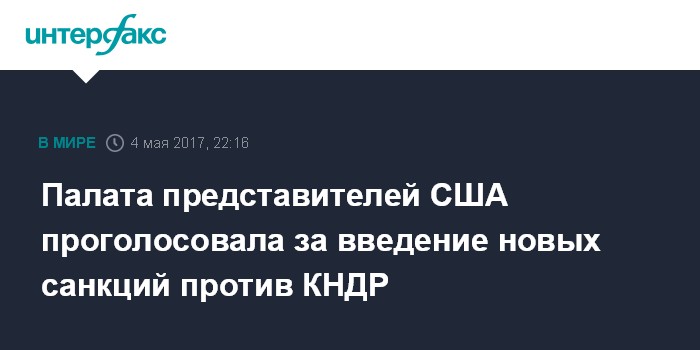 Москва. 4 мая. INTERFAX.RU - Палата представителей США проголосовала за возможность расширения санкций против КНДР, сообщило в четверг агентство Associated Press.
