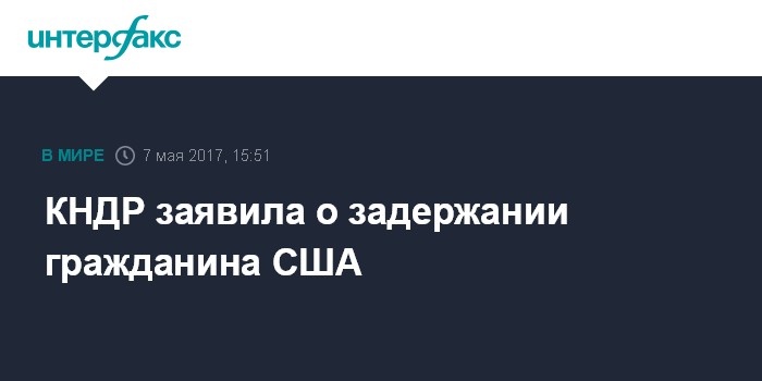 Москва. 7 мая. INTERFAX.RU - Северная Корея заявила о задержании гражданина США, являющегося сотрудником Пхеньянского университета науки и технологий, сообщают в воскресенье западные СМИ со ссылкой на Центральное телеграфное агентство Кореи.