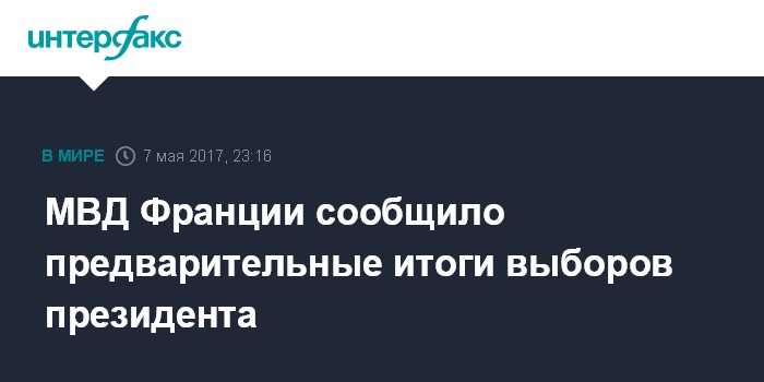 Москва. 7 мая. INTERFAX.RU - Победитель президентских выборов во Франции Эмманюэль Макрон, по последним данным, набрал во втором туре голосования 61,7% голосов, объявили в воскресенье в МВД страны.