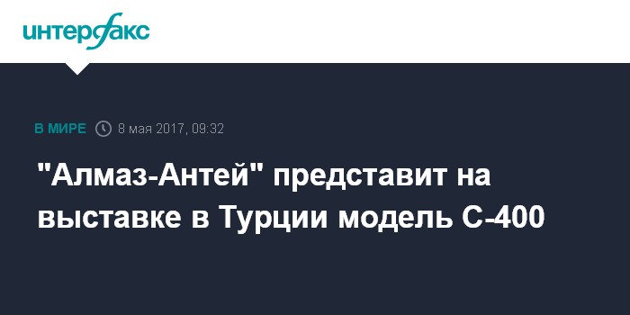 Москва. 8 мая. INTERFAX.RU - Концерн ВКО "Алмаз-Антей" на выставке в Стамбуле представит зенитную ракетную систему С-400, комплексы "Бук М2Э" и "Тор-М2Э", сообщает пресс-служба концерна.
