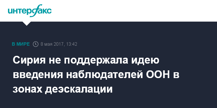 Москва. 8 мая. INTERFAX.RU - Министр иностранных дел Сирии Валид Муаллем высказался против введения механизма наблюдателей ООН в зонах деэскалации, которые были определены на последней встрече в Астане, сообщают арабские СМИ.