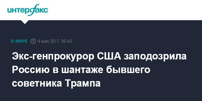 Экс-генпрокурор США заподозрила Россию в шантаже бывшего советника Трампа