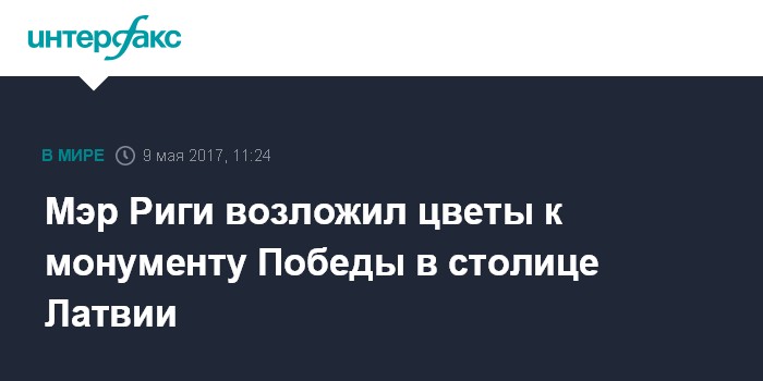 Москва. 9 мая. INTERFAX.RU - Мэр Риги Нил Ушаков, представители Рижской думы и послы России, Белоруссии, Азербайджана и Казахстана в Латвии возложили во вторник утром цветы к монументу освободителям Риги от немецко-фашистских захватчиков.