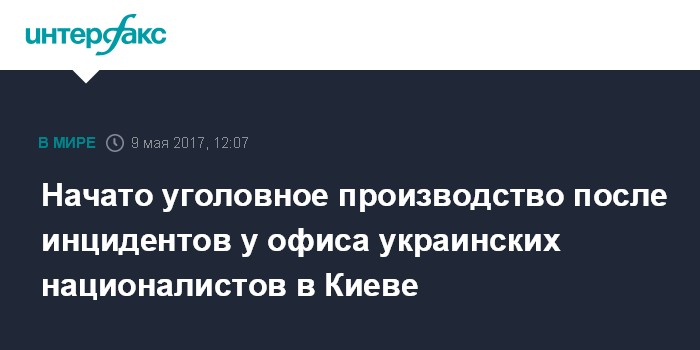 Москва. 9 мая. INTERFAX.RU - Национальная полиция Украины зарегистрировала уголовное производство по факту инцидентов возле офиса националистической организации в Киеве по улице Мазепы, 6.