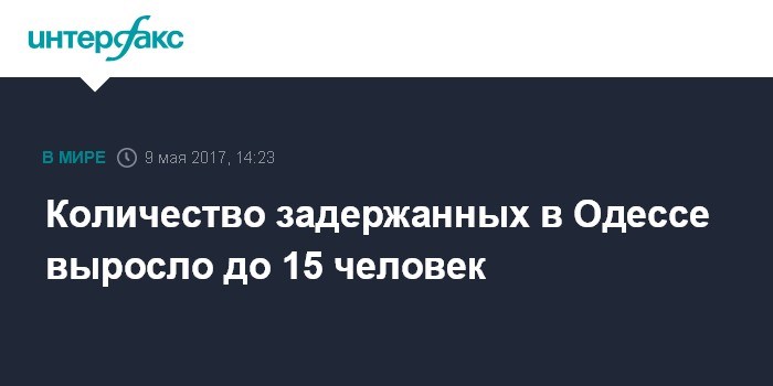 Москва. 9 мая. INTERFAX.RU - Количество задержанных за совершение различных правонарушений во время празднования 9 мая в Одессе увеличилось до 15 человек.