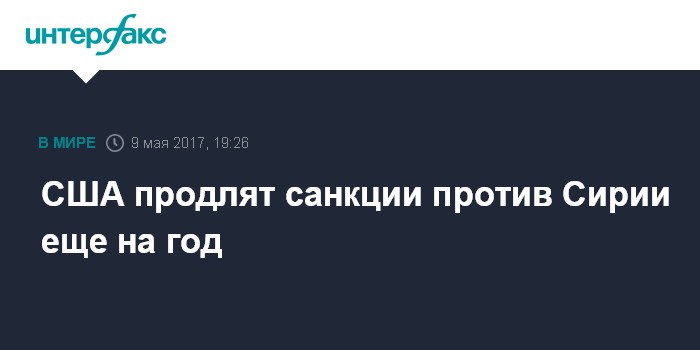 Москва. 9 мая. INTERFAX.RU - Президент США Дональд Трамп продлил на год санкции в отношении правительства Сирии.