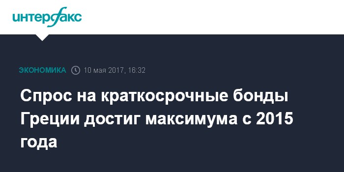 Москва. 10 мая. INTERFAX.RU - Греция в среду провела успешное размещение 3-месячных гособлигаций на сумму 1,138 млрд евро, при этом спрос на них вырос до максимума с начала 2015 года благодаря недавним договоренностям с кредиторами страны.