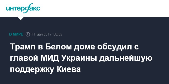 "Президент США Дональд Трамп принял в Белом доме министра иностранных дел Украины Павла Климкина, где стороны обсудили дальнейшую поддержку Украины со стороны Соединенных Штатов", - говорится в сообщении.