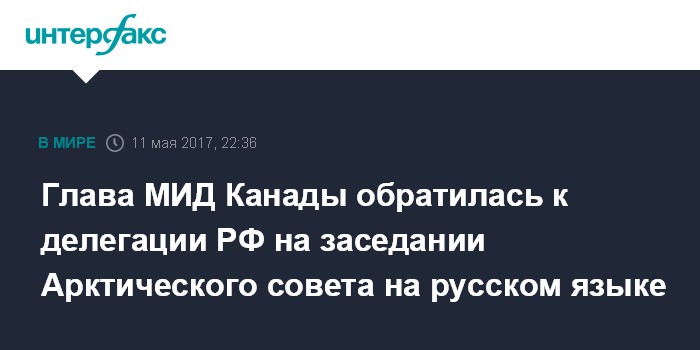 Москва. 11 мая. INTERFAX.RU - Министр иностранных дел Канады Христя Фриланд во время выступления на Арктическом Совете выразила российской делегации благодарность на русском языке и заявила, что рада их видеть на заседании.
