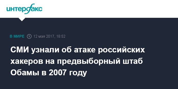 Москва. 12 мая. INTERFAX.RU - Российские хакеры совершали кибератаки против сотрудников предвыборной кампании экс-президента США Барака Обамы и представителей ряда министерств США в 2007-2008 годах, пишет журнал Newsweek со ссылкой на черновую версию доклада компании Area 1 Security.