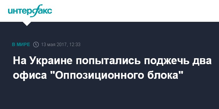 Москва. 13 мая. INTERFAX.RU - Пожарные дважды в ночь на субботу ликвидировали возгорания в офисах политической партии "Оппозиционный блок", расположенных в Кривом Роге и Каменском.