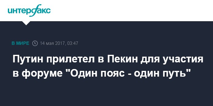 Москва. 14 мая. INTERFAX.RU - Президент РФ Владимир Путин прибыл с рабочим визитом Пекин для участия в Международном форуме "Один пояс - один путь", в рамках которого российский лидер выступит на церемонии открытия Форума и примет участие в его рабочих заседаниях.