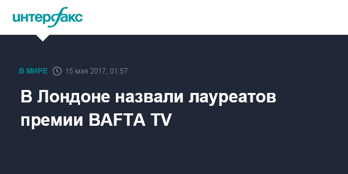 Москва. 15 мая. INTERFAX.RU - Британская академия кино и телевизионных искусств вечером в воскресенье в Лондоне вручила премии создателям лучших национальных сериалов прошедшего года, сообщает The Hollywood Reporter.