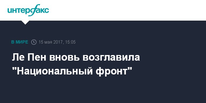 Москва. 15 мая. INTERFAX.RU - Проигравшая на выборах президента Франции Марин Ле Пен вновь стала главой ультраправого "Национального фронта", заявил временно исполняющий обязанности председателя этой партии Стив Бриуа.